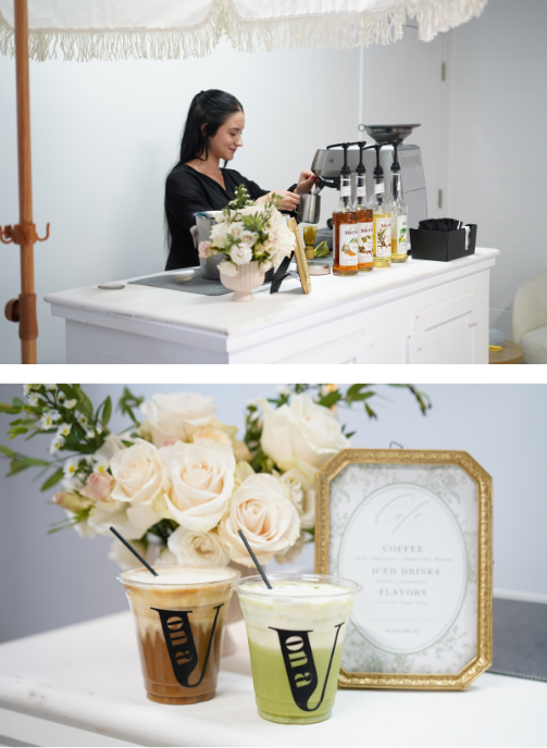 From premium specialty coffee to ceremonial-grade matcha, handcrafted refreshers, and fresh pastries, every detail is intentional. Our custom-built mobile cart becomes a visual centerpiece, styled to match your event’s aesthetic through tailored themes, finishes, and branding moments.
